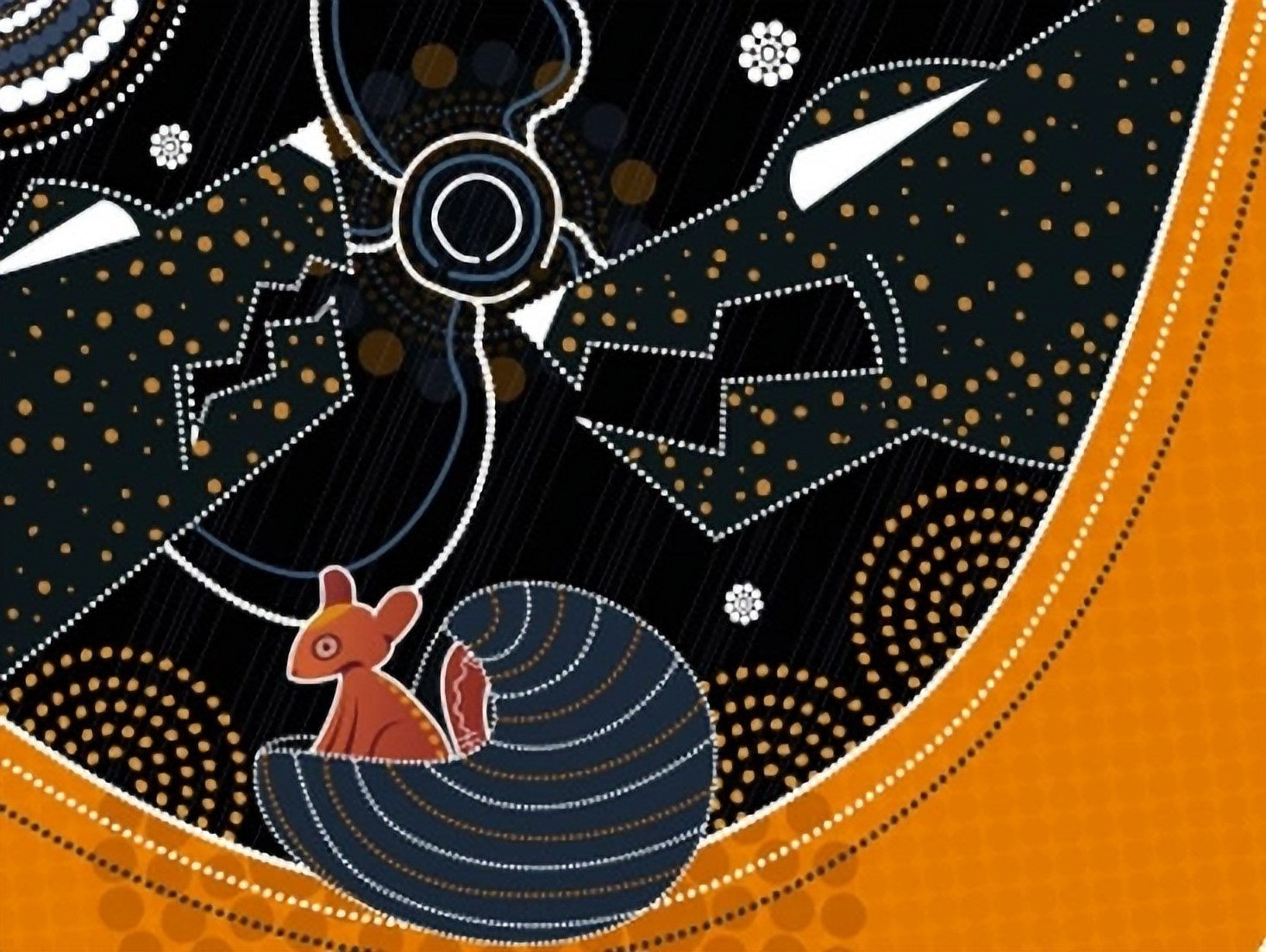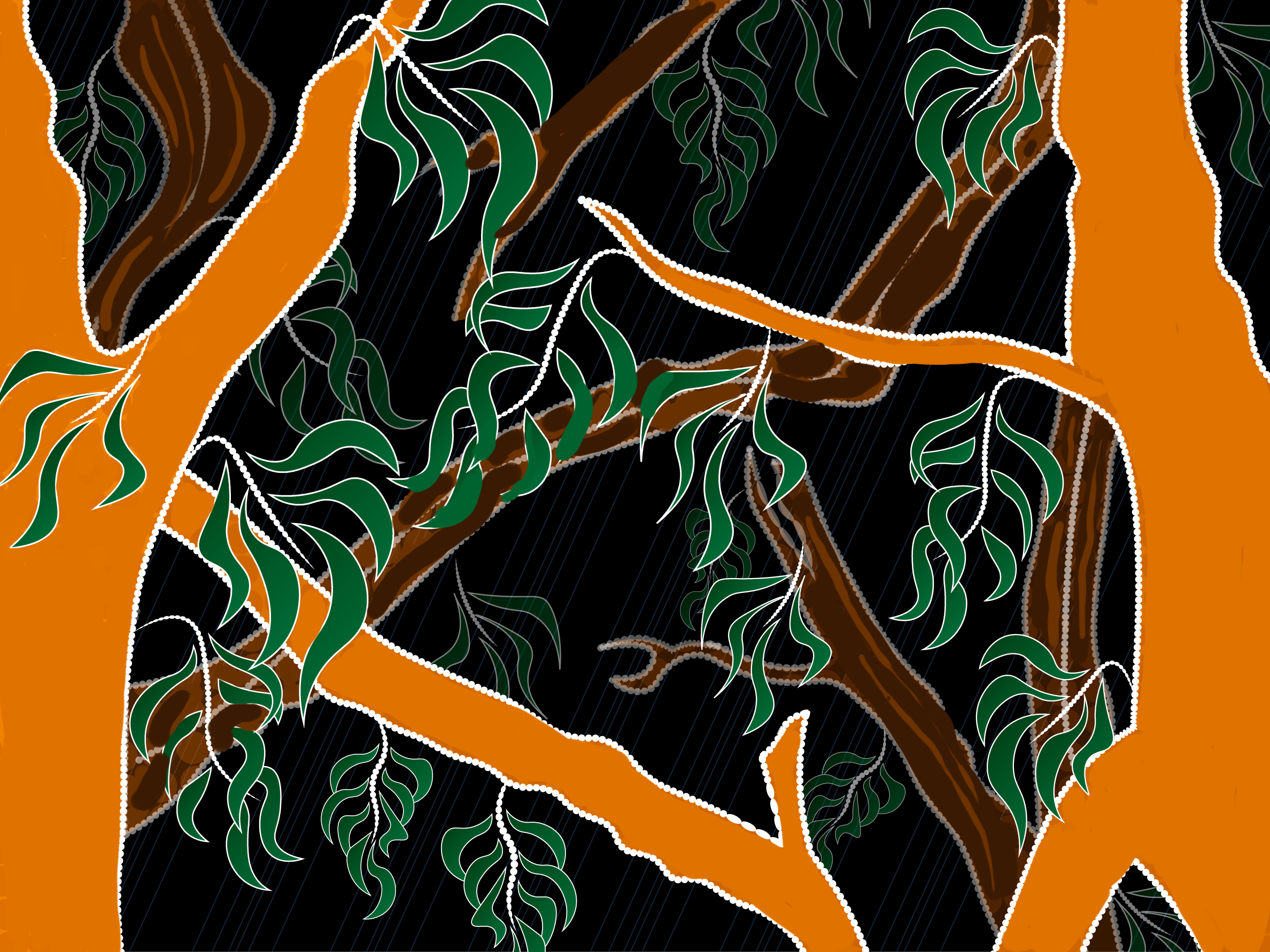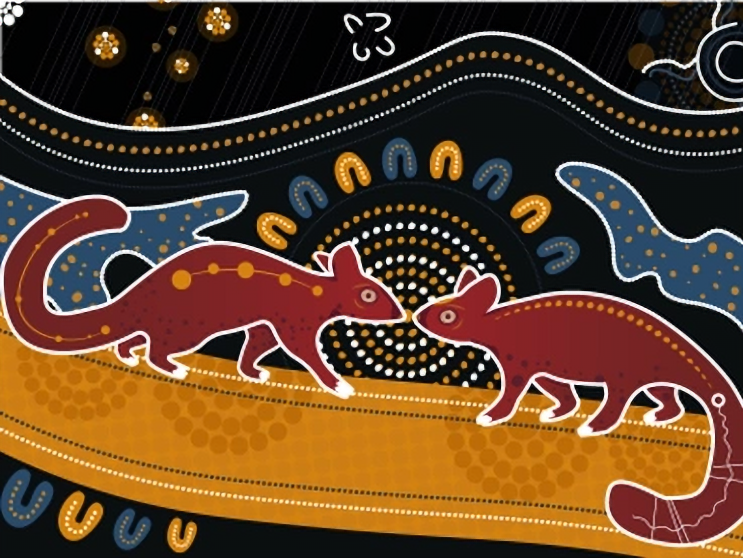 The artwork was designed as a Songline. The Songline travel with Mama Possum as she journeys through trauma and loss towards healing and mother-wisdom, commencing where assimilation had forced her to be and then journeying to recovery guided by the Possum Mama Sistas (Aunties, Grandmothers).